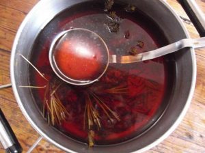 Se pasa por un colador o -si son grandes partes de plantas, se quitan las plantas y ya está preparada la infusión. Algunas plantas se pueden dejar en la infusión hasta beberla.