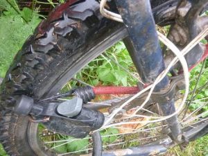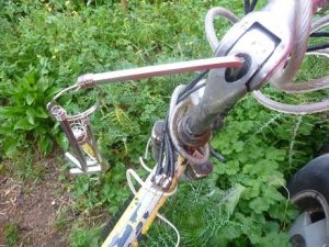 En ocasiones la bicicleta requiere improvisación y un espíritu inventor. Una noche en la lluvia me falló la dínamo (que era muy nueva) por falta de fracción con la humedad. Era necesario apretarla más fuertemente a la cubierta. Así encontré la solución en el pulpo como se ve en la foto. Mientras tanto le he puesto una dínamo de buje que es la más fiable, también en la lluvia.