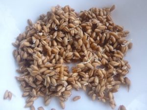 Espelta verde, cosechada antes de la maduración y tostada, en diferentes platos cocidos.