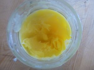 Ghee en uso externo untado sobre la piel, también como aceite de masaje.