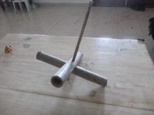 Un huso se hace de un volante que pueden ser dos cañas gordas o dos tablas estrechas en forma de cruz. Se taladra un pequeño agujero y se pone una caña fina dentro. Ya tenemos un huso.