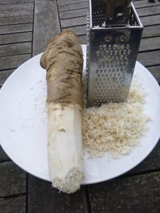 La raíz se suele rallar, se puede preparar con vinagre.
